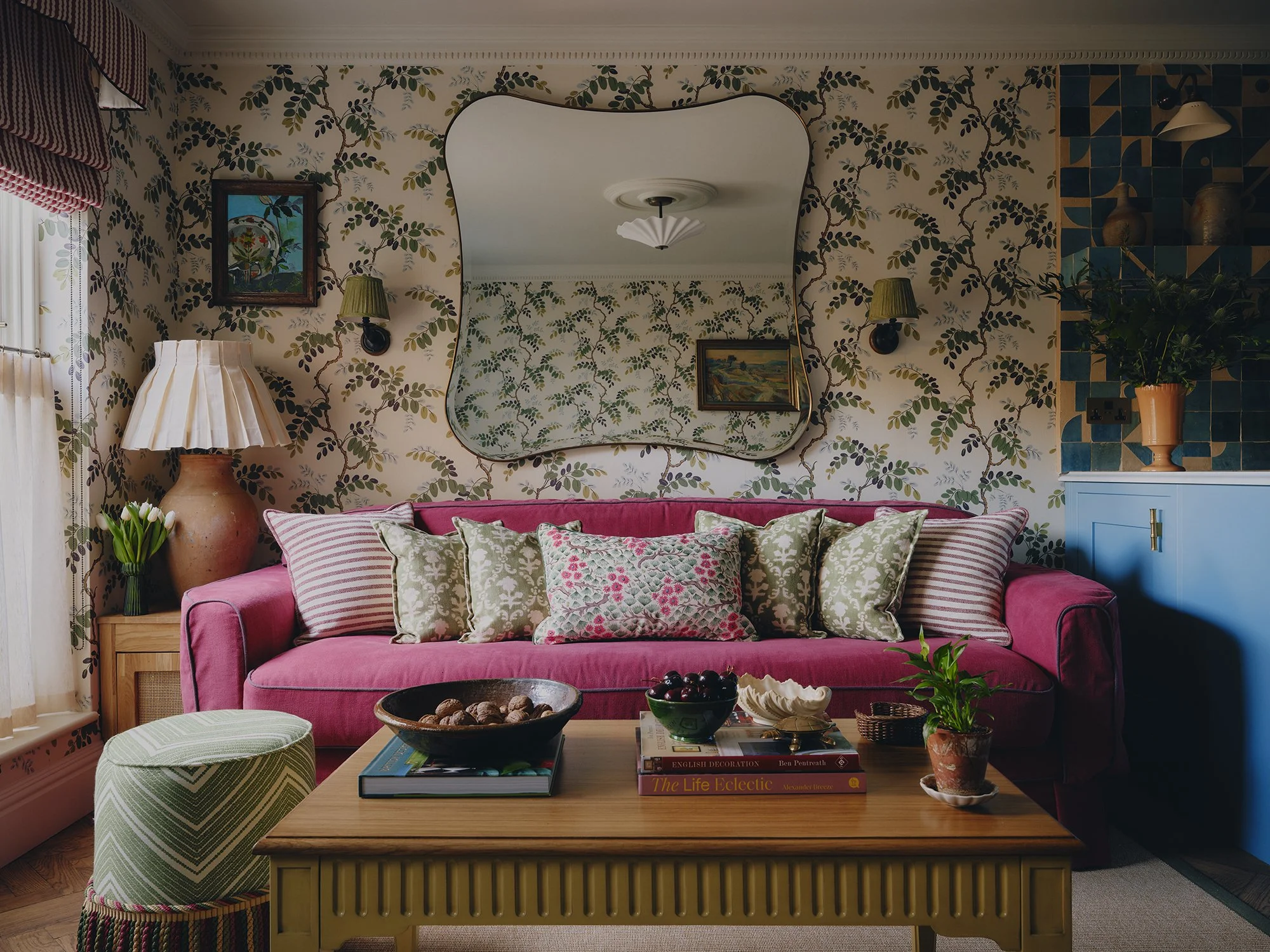 Set within a 1990s brown-brick development in Canada Water, this apartment has been transformed into a vibrant, Mediterranean-inspired jewel box, a complete contrast to its urban exterior.